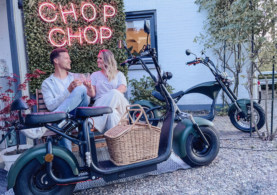 Sie können bei Chopchoptours im Raum Utrecht einen E-Chopper mieten und Ihr Erlebnis mit zusätzlichen Optionen wie Picknicks, gutem Kaffee, Leckereien für unterwegs, Themen und mehr abrunden! Kinder sind herzlich willkommen, denn es gibt Kindersitze und 2-Personen-E-Chopper. Es gibt verschiedene Routen, jede mit ihrem eigenen Thema, sodass für jeden etwas dabei ist.